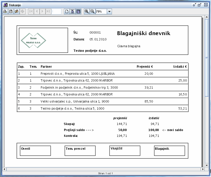 Blagajniški dnevnik se v celoti izpolni avtomatsko in s tem omogoča preprosto vodenje gotovinske blagajne.