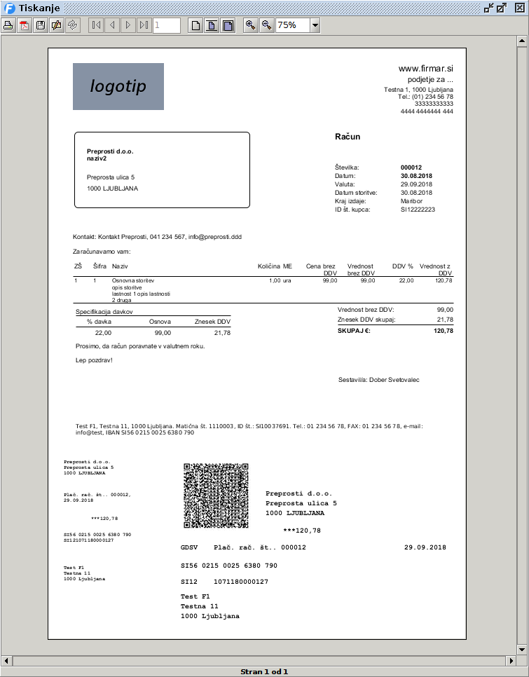 Z izpisom UPN naloga skupaj z računom prihranite na času, saj vam ni potrebno izdelovati računa nato pa še UPN naloga.