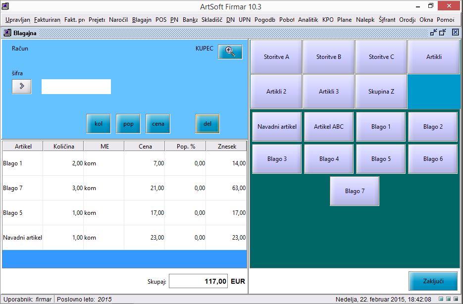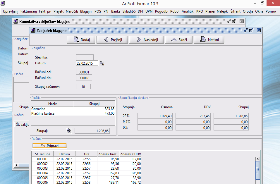 Preverite račune - dnevni iztržek - nato pa konec dneva zaključite blagajno.